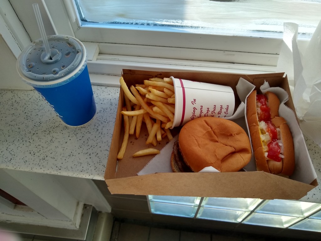 I went for the standard burger, hot dog, french fry combo with a cold diet Pepsi. On a cold January afternoon it was perfect.