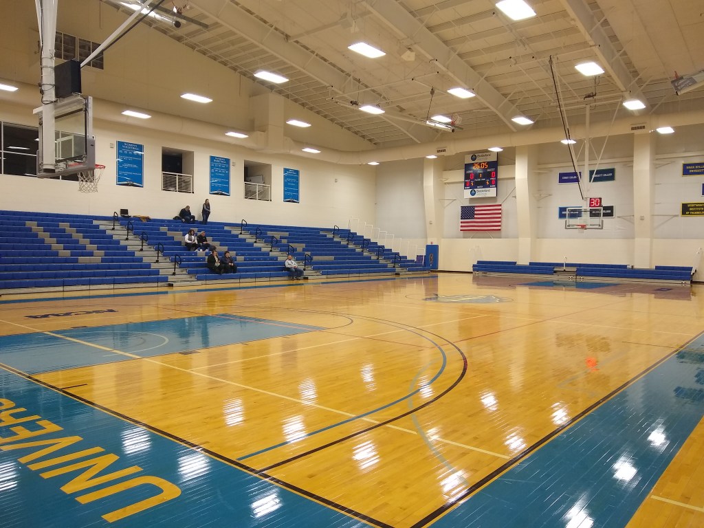 The gymnasium sits 1,200 people and is bright, vibrant, and a great place to catch a game.