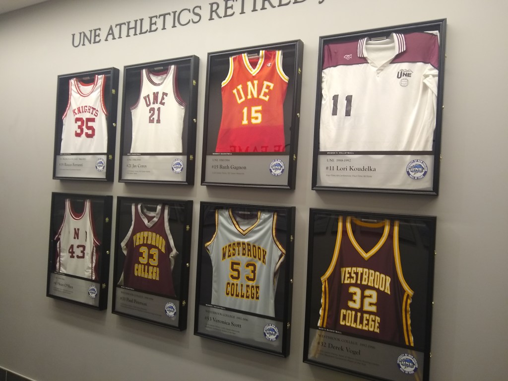 There’ also a unique hall of fame dedicated to UNE’s long, unique history. There’s a nod to former school colors and old Westbrook College, which merged with UNE back in 1991. The original Westbrook campus morphed into UNE’s Portland satellite.