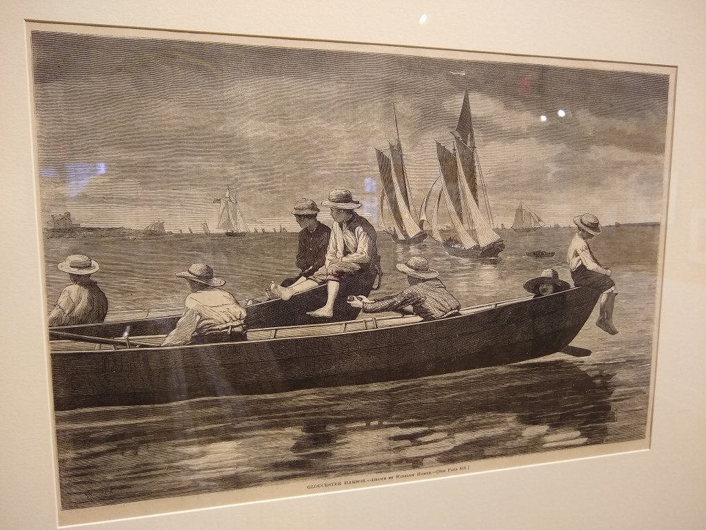On this day there was a whole room dedicated to works by my favorite American Artist, Winslow Homer. Before he painted his famous landscapes in Maine, he was a magazine illustrator and the exhibit went back through his career with the pen.