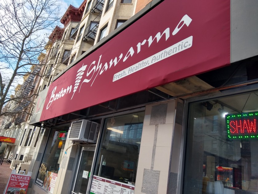 A small storefront just down the road from the gym, it sits about a seven iron away from Symphony Hall. And it’s great. Small, compact, well-priced, and a damn good spot to get a shwarma on the go.