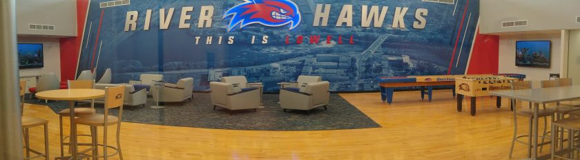 The Costello Athletic Center is the beating heart of UMass Lowell sports. The soccer/lacrosse field and the field hockey field sit across the parking lot from the building. Opened in 1964, it’s the home of the Riverhawks both literally and spiritually.