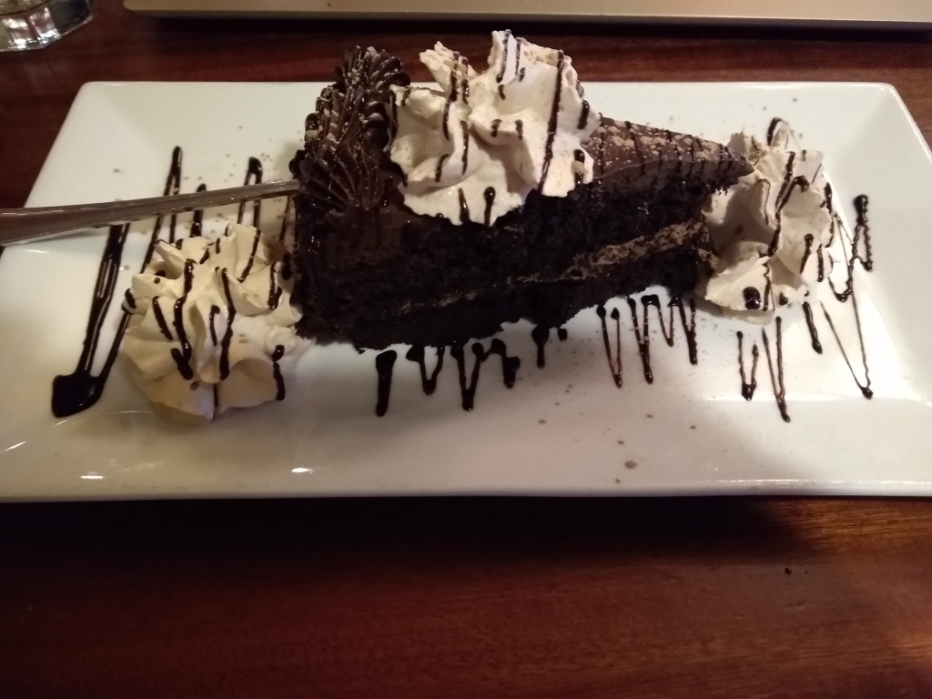 Oh, and there was a piece of chocolate cake with chocolate whipped cream to put a bow on the meal.