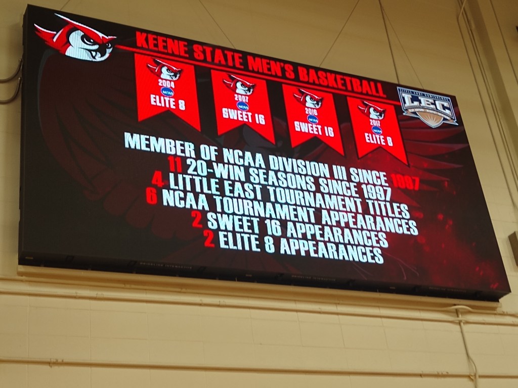 One neat quirk that I haven’t seen in any other D3 gym in my travels was the video board. Fully HD, it ran graphics throughout the game.