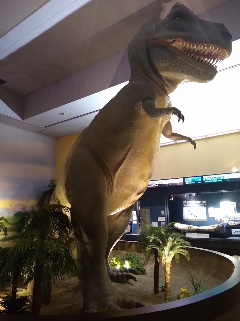 I audibly gasped when I saw it. In my head of course I know a T-Rex is a big, but to see a full-sized replica from ground level was awe-inspiring. The picture does not do justice to its full size.