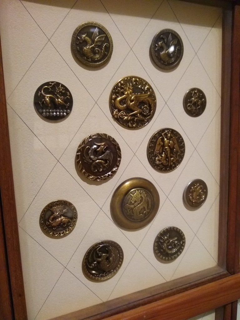 It’s buttons of all types and constructions. Buttons that were displayed at World Expos many moons ago. Buttons for clothes. Buttons for decor. It is a room covered wall-to-wall in buttons.