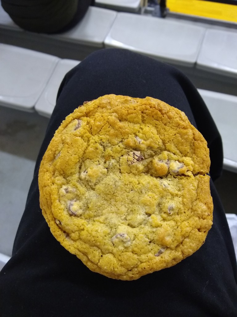 Before the game I pulled out a chocolate chip cookie I purchased on an impulse as I walked out the door of Dottie’s. Gooey, toothsome, and crunchy on the edges it was my new #1 chocolate chip cookie in New England. Best way to prep for a game.