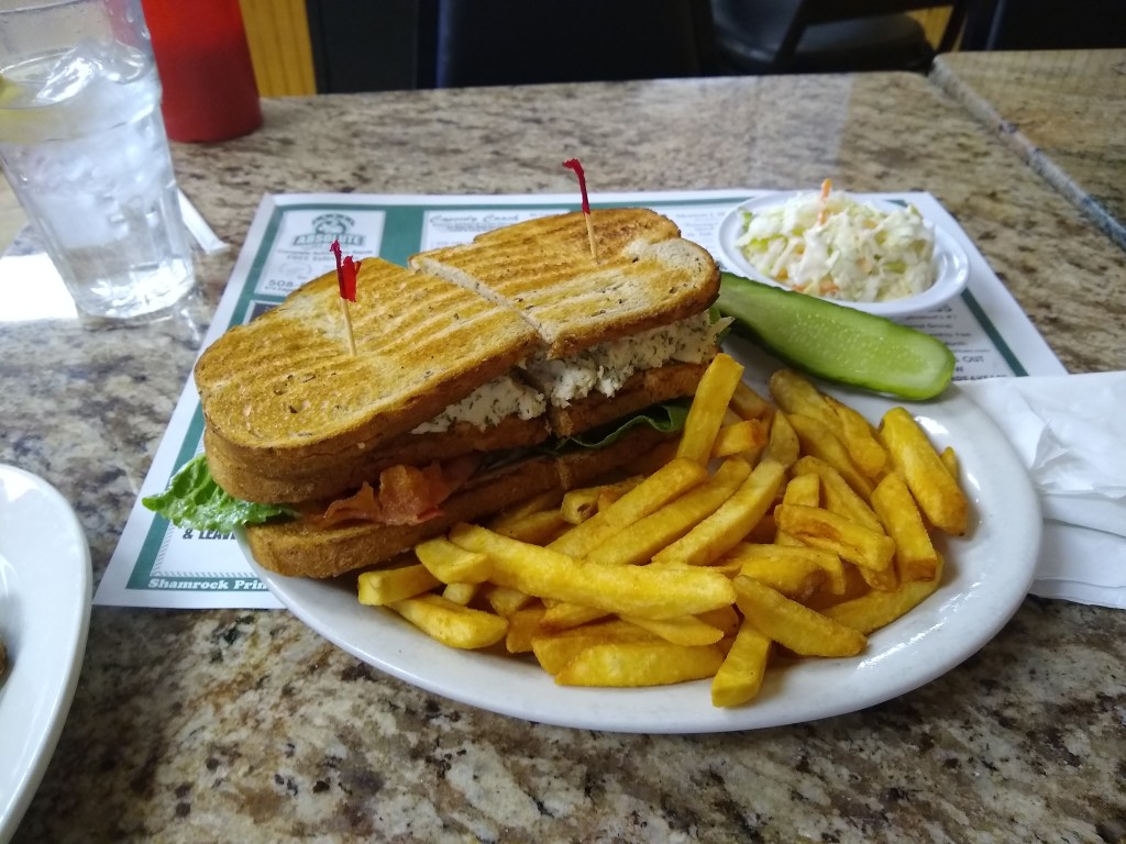 The main event was a chicken salad club on rye with the works.