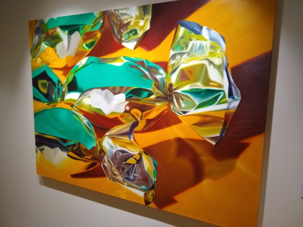 When you get off the elevator it immediately dumps you into the museum, and for $7 there is a whole lot to see. My personal favorite was Foiled Again by J. Jones. For one, the name was a pun, and the colors of the piece made me do a double take.