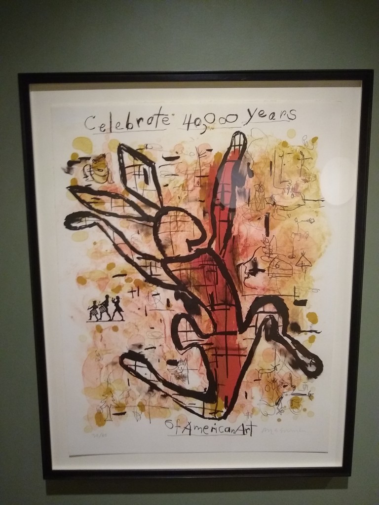 One of the galleries was focused on indigenous art and what “American” art even is. My favorite was this bright, bouncy piece from Jaune Quick-to-See Smith.