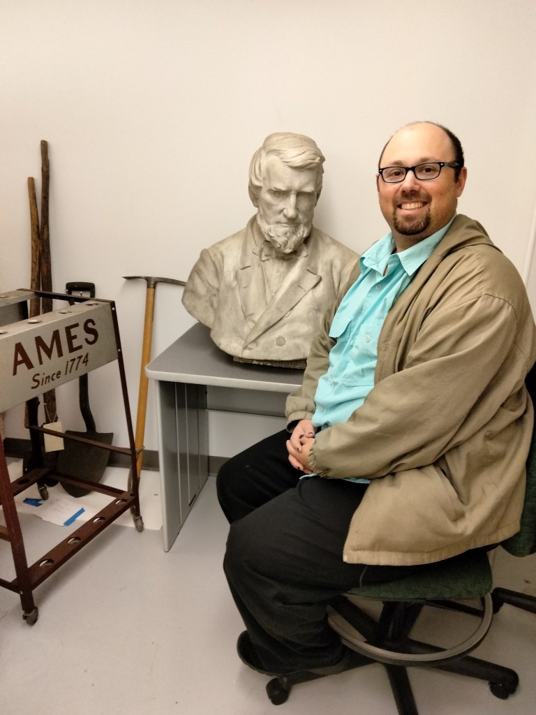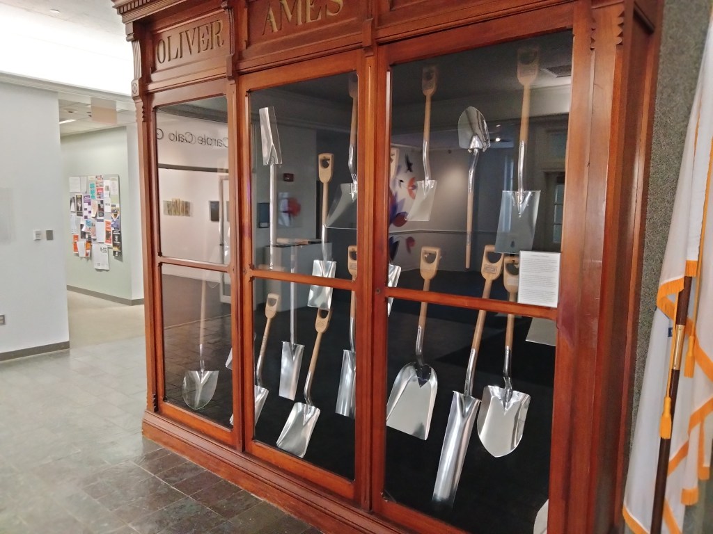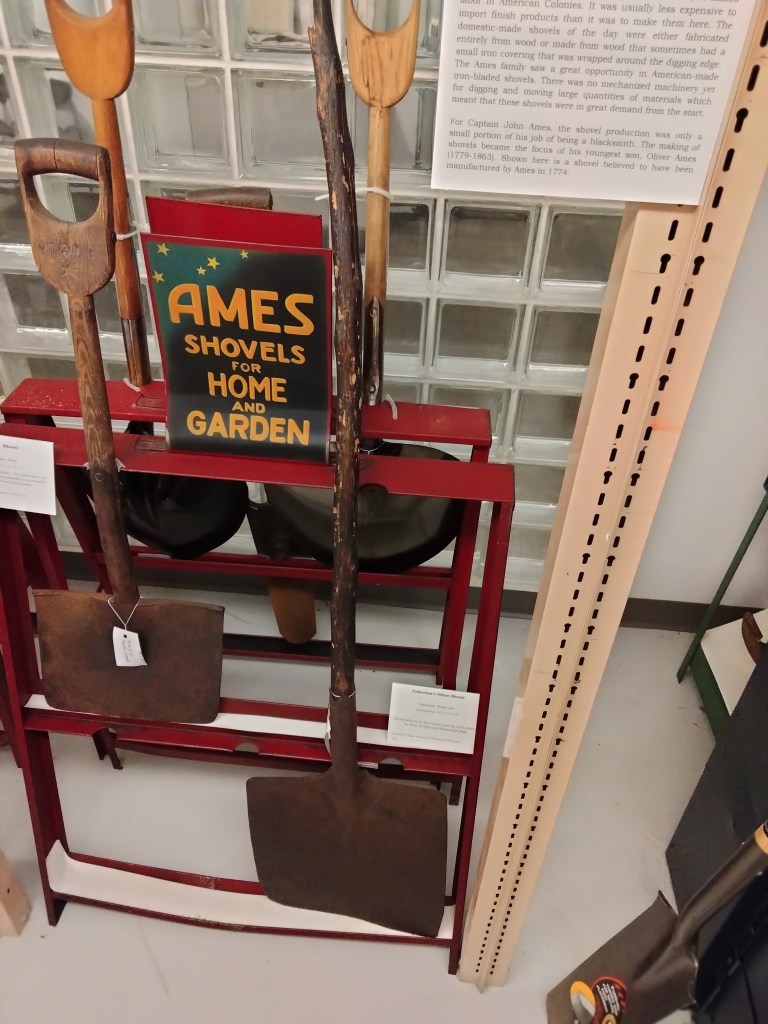 She gave me the whole history of the Ames family and company. Oliver Jr. and Oakes saw the company rise to prominence during the California gold rush and the construction of the Erie Canal. Their shovels were so wanted that they were used as currency.