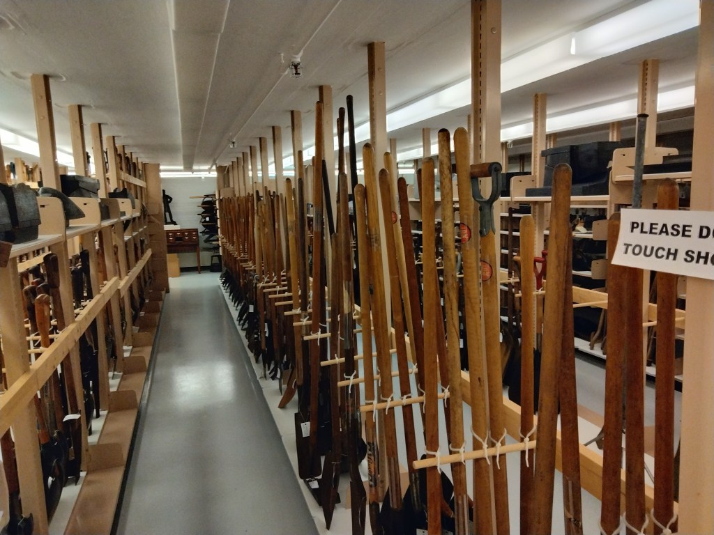 The aisles kept going and going. There were shovels made for pretty much every war in American history. There were shovels under all sorts of different brand names. Those shovels from the beginning of this section? Yeah, those are silver-plated in such a way that they never tarnish. Nicole said they still don’t know the composition of the alloy and why it maintains its shine. The shovels made by Ames were, and are, quality bits of kit.