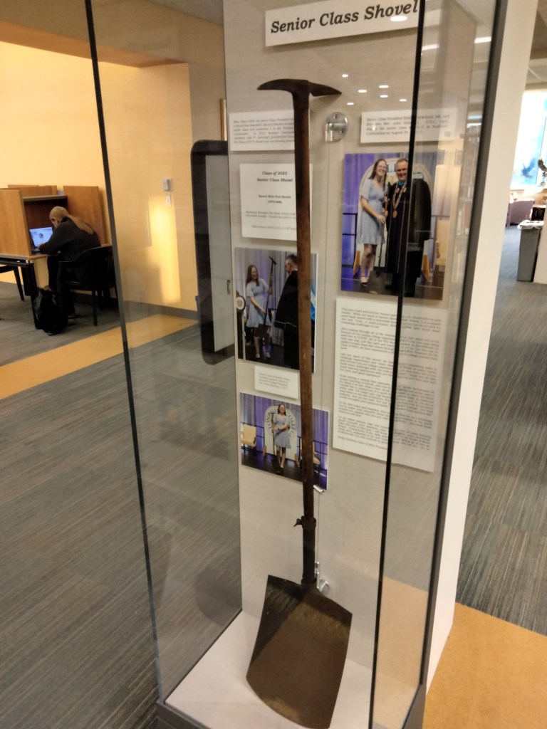 Sitting in a glass case in the library is the senior class shovel. Nicole explained to me that it’s tradition for the senior class president to pick a shovel that is then displayed all year in the library.