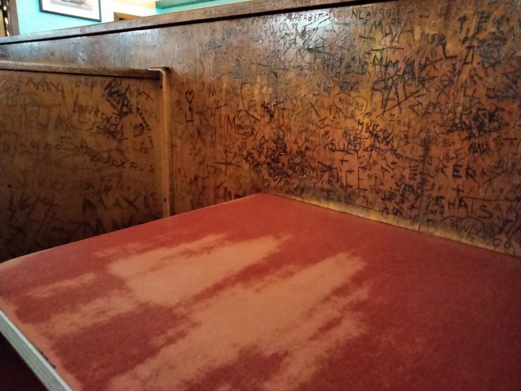 One of the signatures of Coney Island is the endless amount of scratch graffiti chiseled into the walls and booths of the restuaurant.