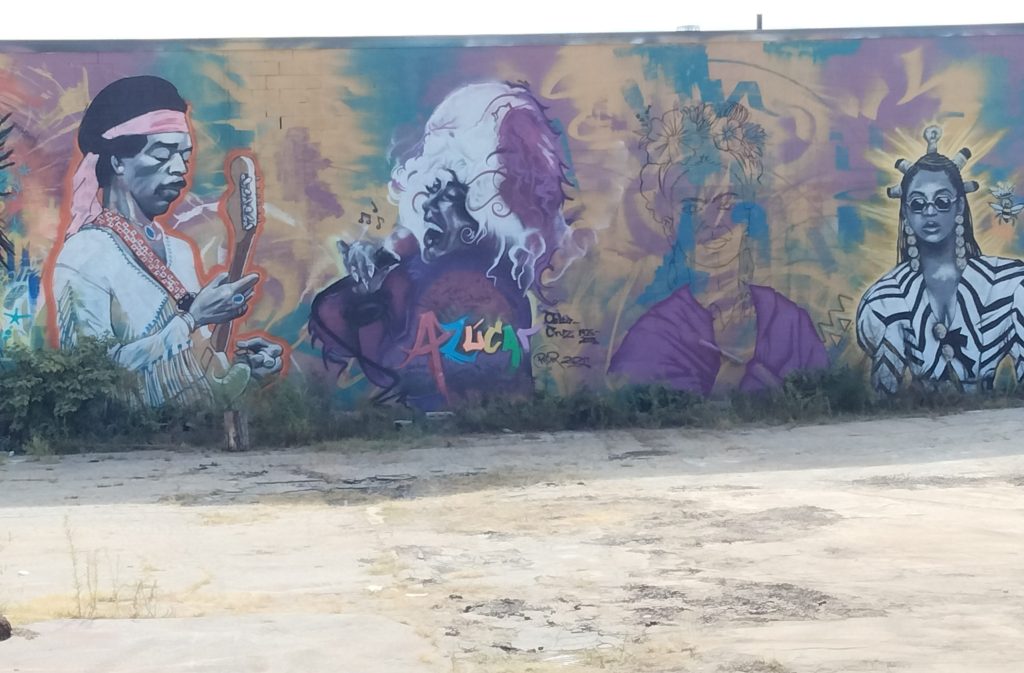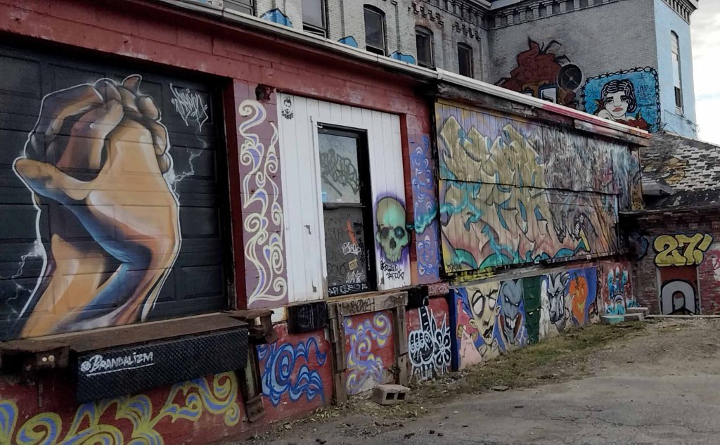 The diner shares a lot with an old brick textile mill that opened in the 1870s. Today, the walls of the mill are covered in extensive, beautiful graffiti art.