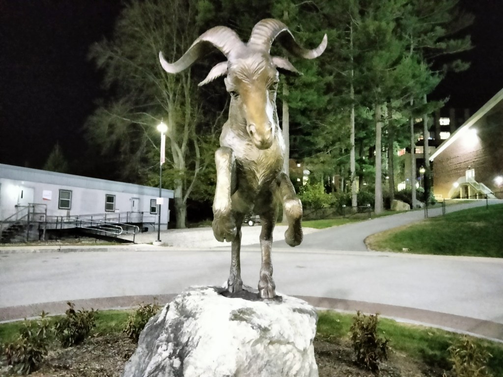 Despite being nicknamed the Engineers, the school’s mascot, as seen in the photo atop the piece, is Gompei the Goat. In 1891 the sophomore class stole a goat to use as a mascot. Gompei Kuwada tended to the goat because he was the only student with G.K. initials (same as goat keeper). The modern mascot was named in his honor.