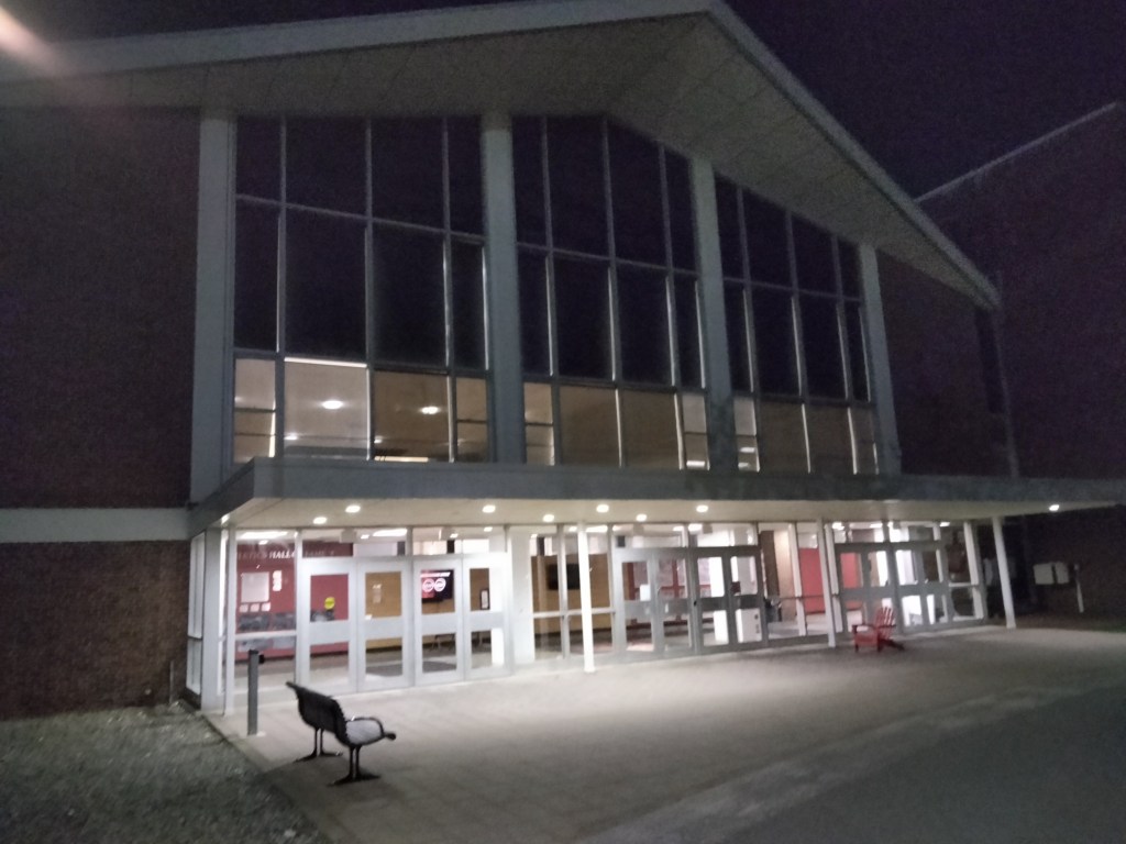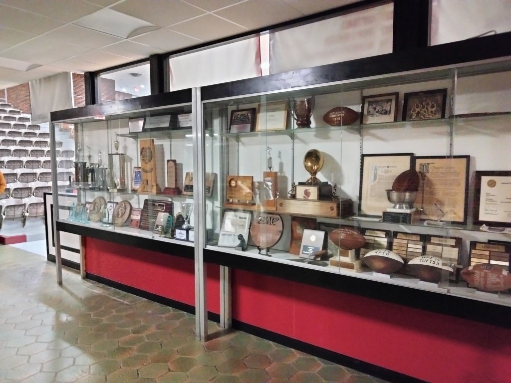 The entryway has a nice trophy case and that’s it. No table for snacks. No table to take tickets. Admission is free at WPI.
