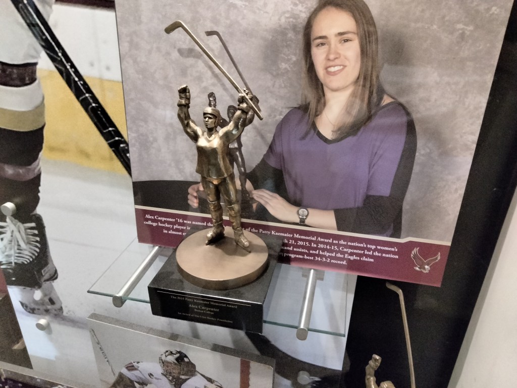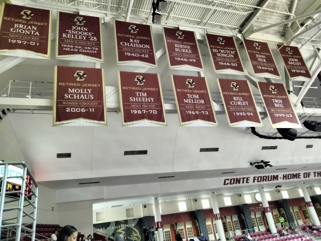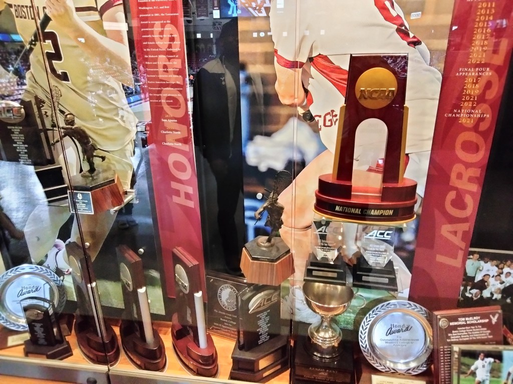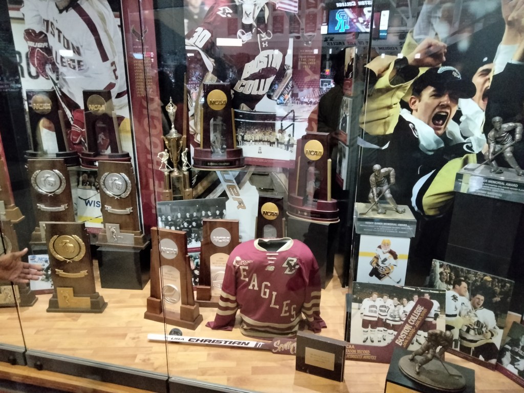 At one end of the arena there is an extensive trophy case dedicated to all things BC sports. National championship trophies for men’s hockey and women’s lacrosse highlight, but every sport has its moment to shine.