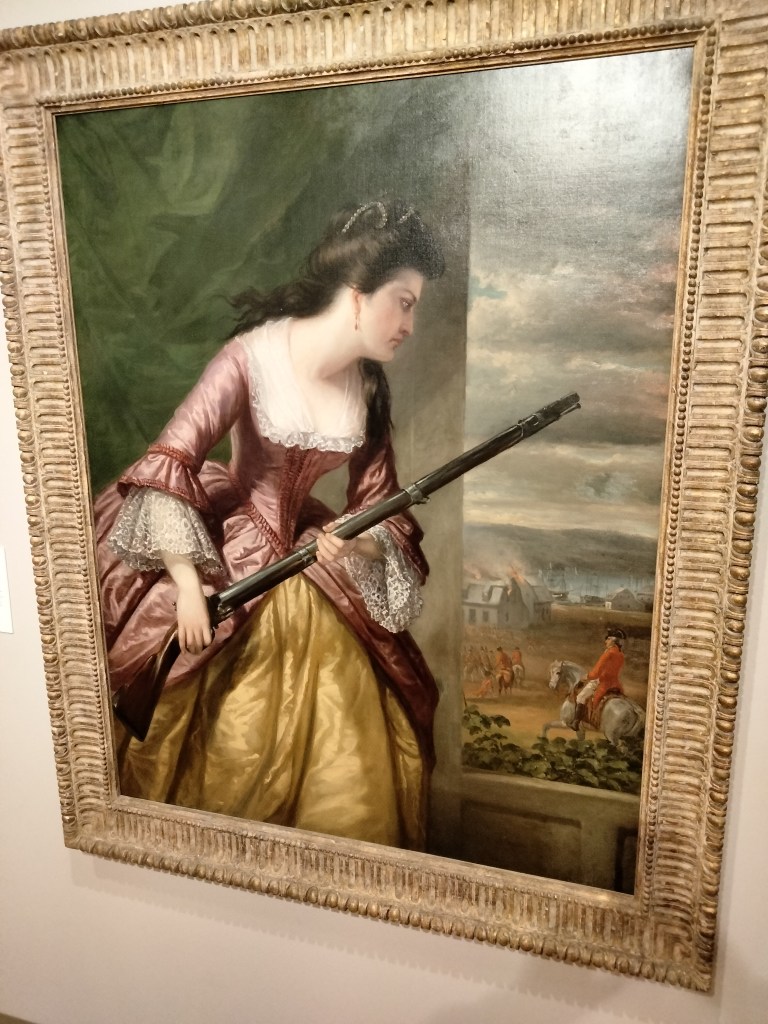 This painting has a hell of a story as it tells the tale of Abigail Hinman during the burning of New London in 1781. That’s her staring down Benedict Arnold. I’ll let the museum description tell the rest.