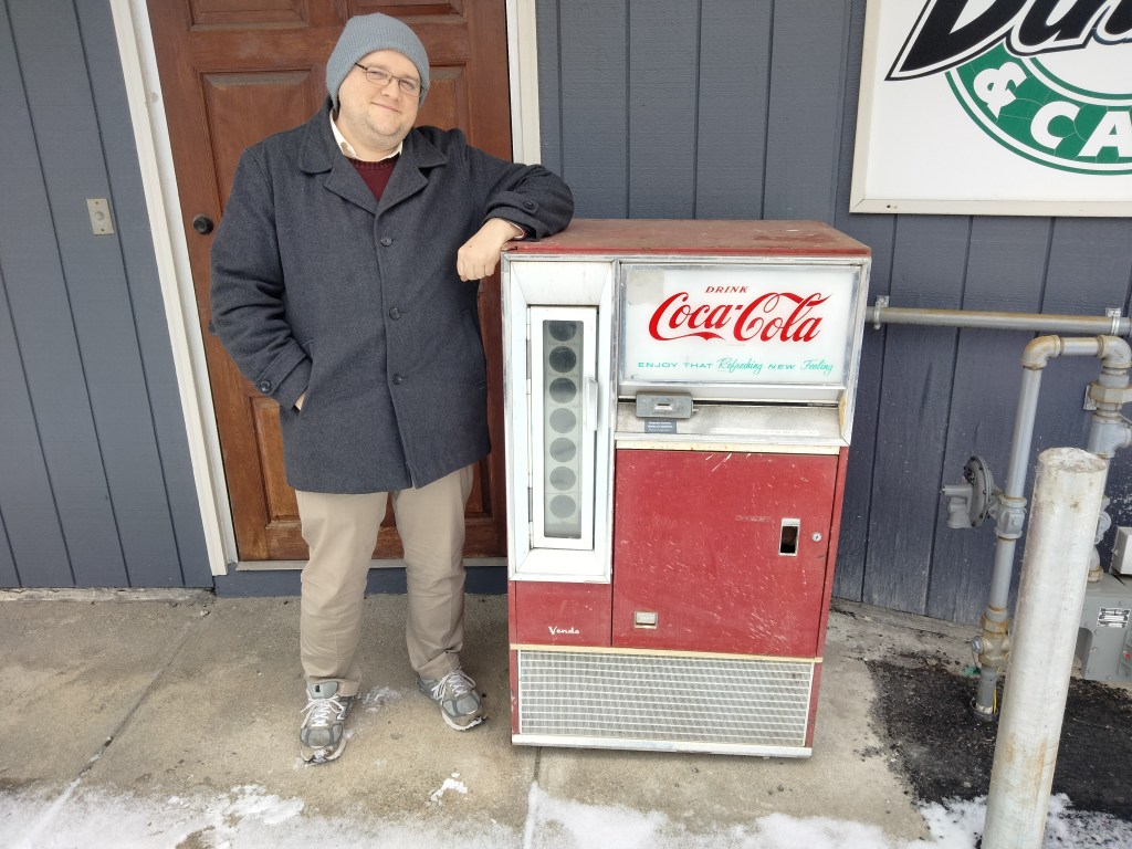 Outside there was a vintage Coca Cola dispenser? Machine? Cooler? I’m not sure what exactly, but Clayton modeled it beautifully.