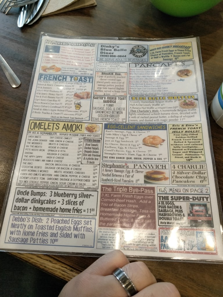 The menu is a lot. Not only in the “it’s a diner so of course it has options” way but in a literal sense too. Dinky’s has one of the most visually busy menus I’ve ever seen.