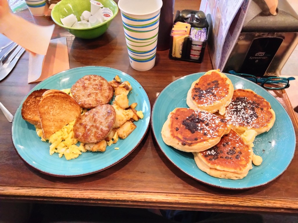 The left plate was excellent. The eggs were how I like them, the home fries were the type of crispy I like, and sausage patties are the superior breakfast meet. More diners need to have Italian bread in their toast rotation. It’s in the starting five for sandwich breads and it’s just as good as toast.