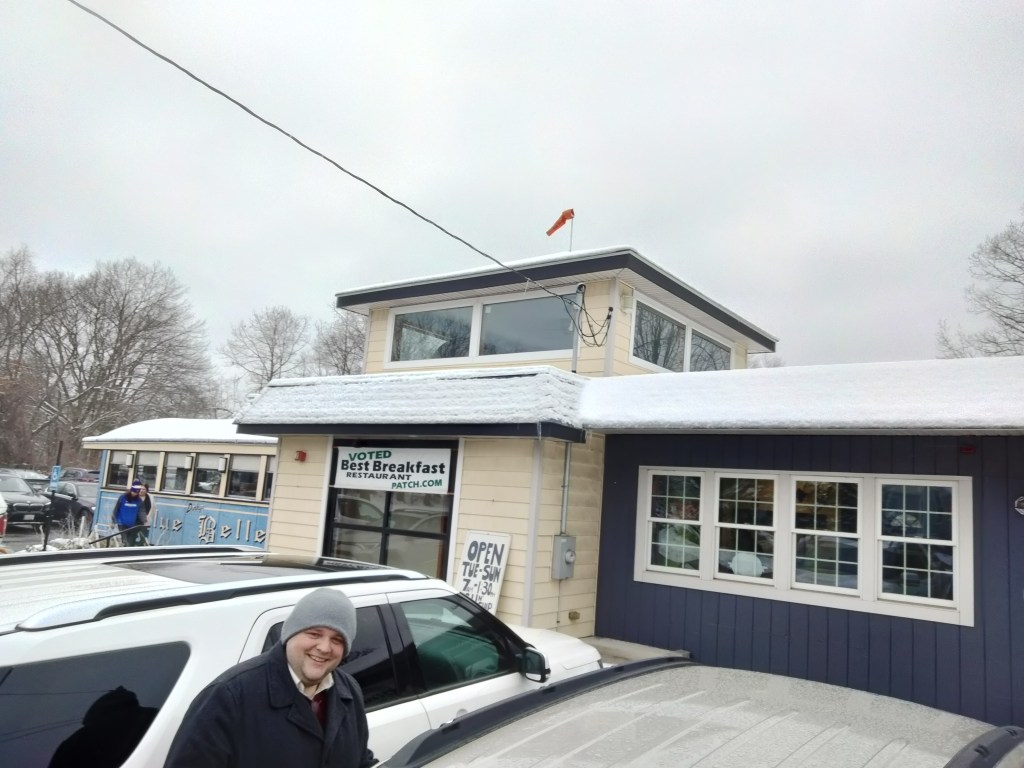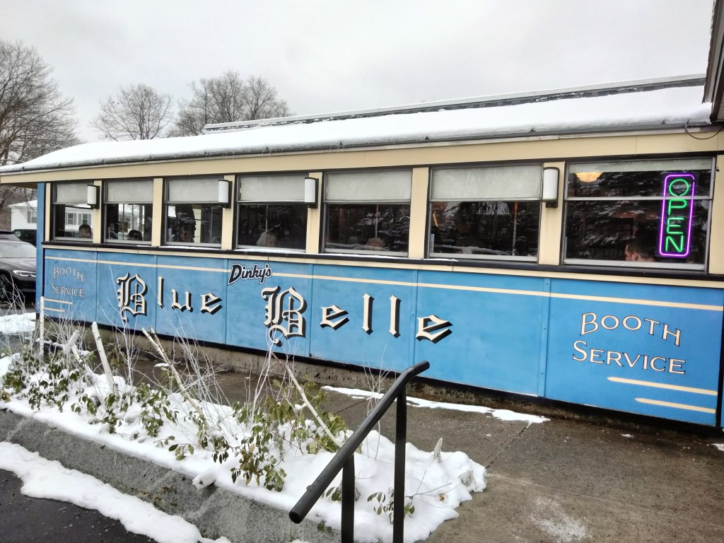 My friend Clayton stayed the night before the game and before heading out us, Christina, and Claire had breakfast at the charmingly named Dinky’s Blue Belle Diner, an old lunch car cafe in Shrewsbury.