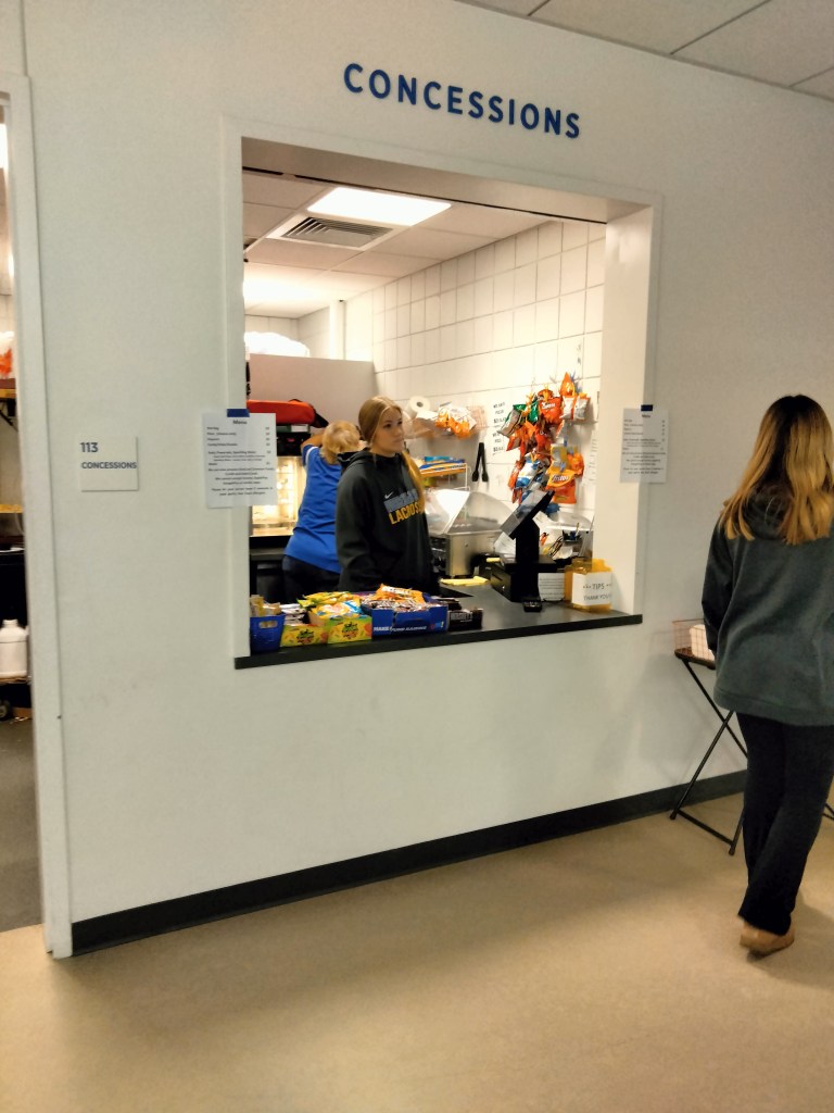 There’s even a small concession stand built into the wall opposite the gym. It sells standard concessions fare.