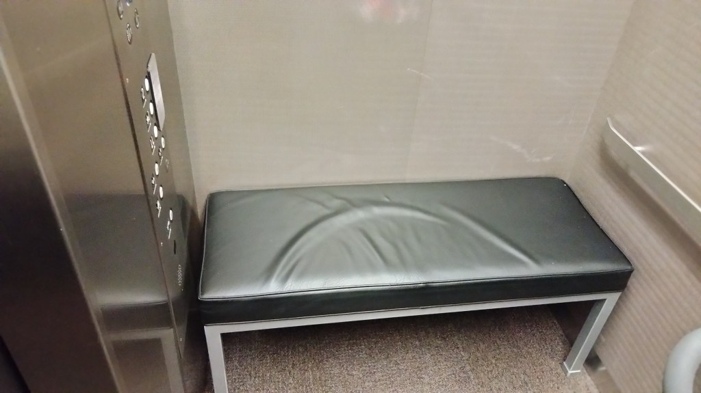 However in the elevator there was a padded bench. All elevators should have a padded bench.