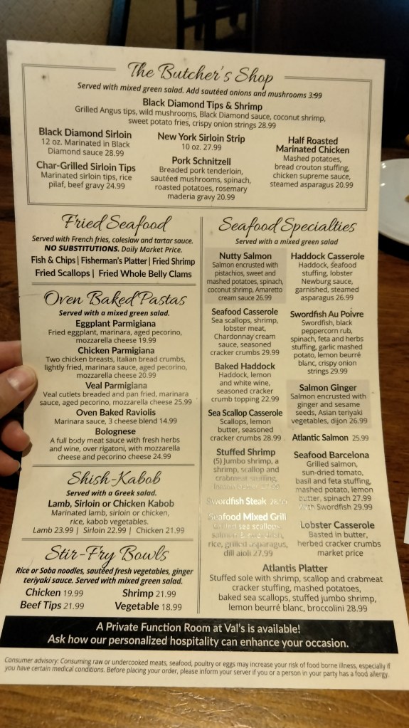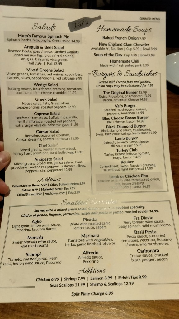 The towns west of Worcester are pretty spartan until you get toward Chicopee and Springfield. So for a good meal I went to the next town over, Holden, for a bite at Val’s.
