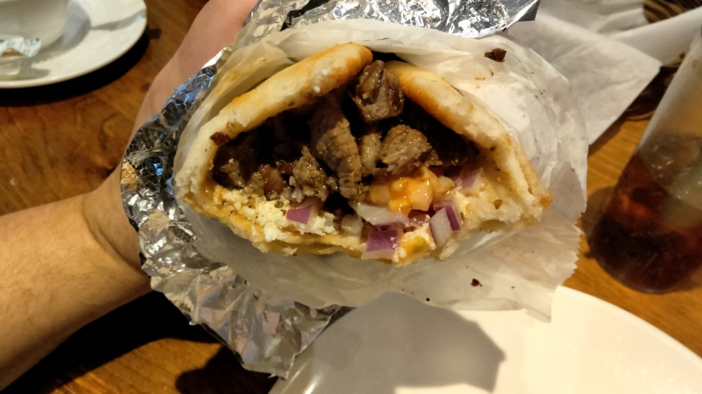 The pita was sublime. The bread. Holy shit, what perfect, chewy bread. With a base like that it was almost impossible to miss. The fact that the lamb was perfectly cooked, and that the tomato and onions provided the perfect brightness and crunch, this was damn close to a perfect sandwich.