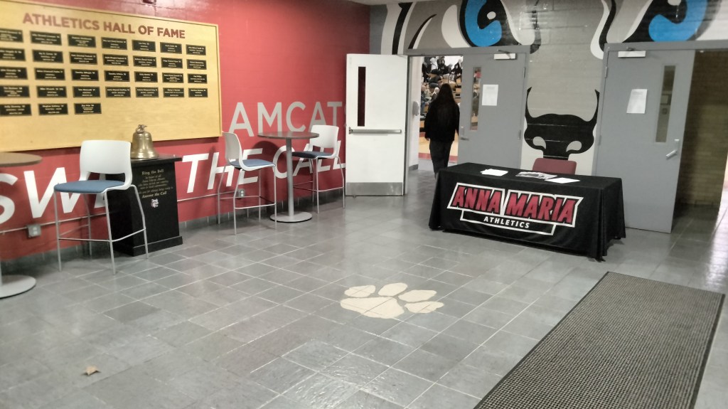 Amcats comes from Anna Maria College Athletic Team Sports. A-M-C-A-T-S.