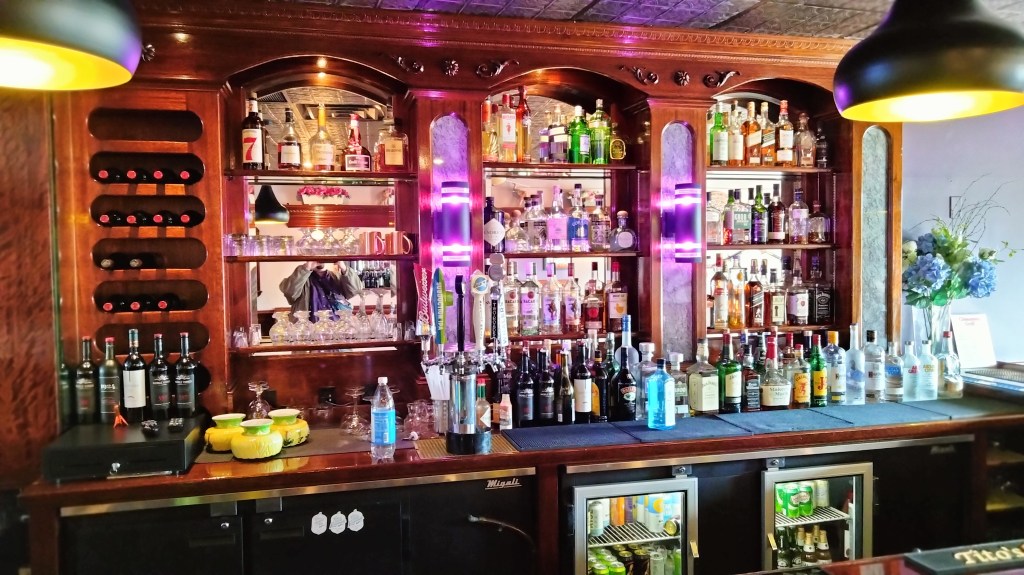 The restaurant felt like two pods connected by a middle walkway with a well-stocked bar on one side.