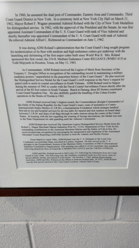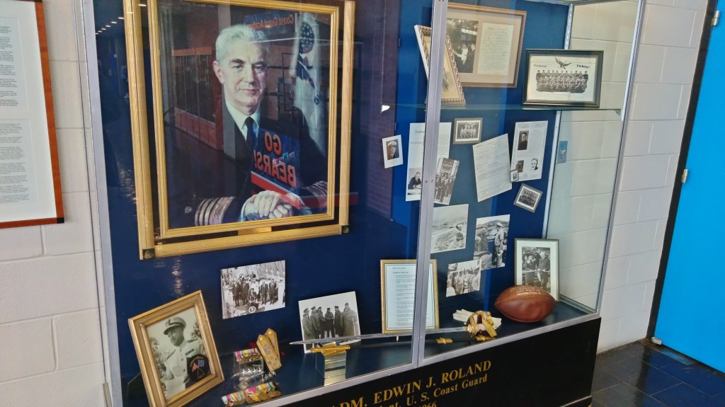 The building is named for former Admiral Edwin J. Roland and features a small exhibit about him and his athletic and military exploits. He was the first alum enshrined in the Coast Guard Academy athletic hall of fame.