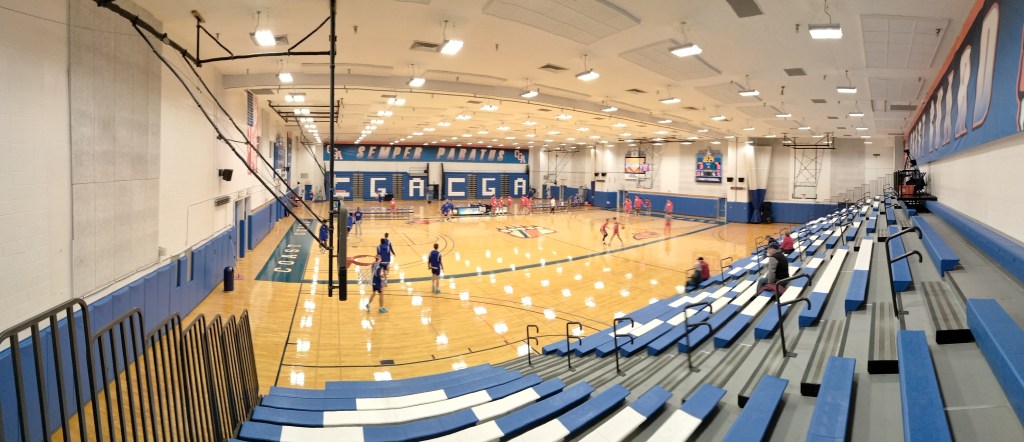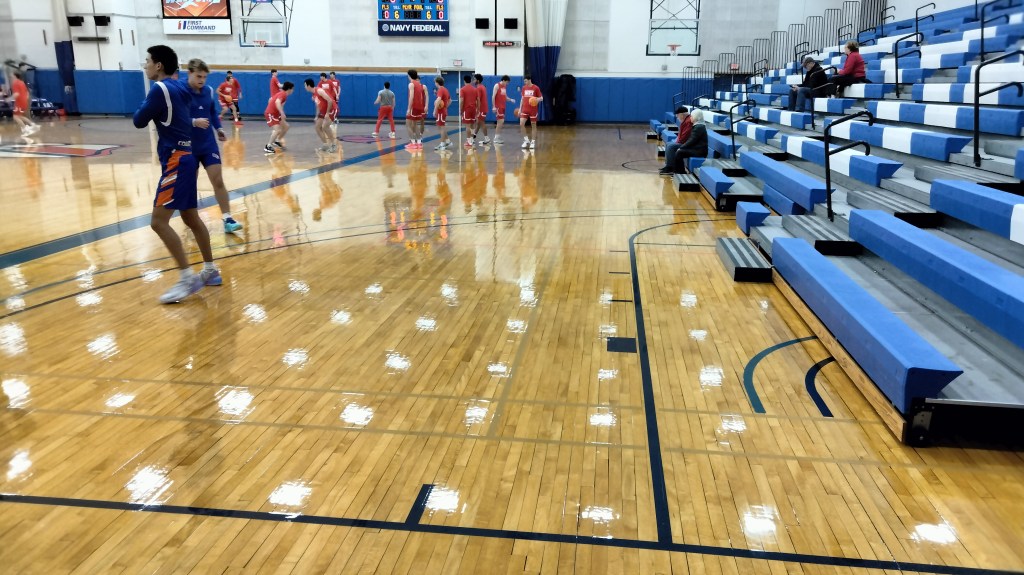 But now a moment to complain about the absolutely absurd amount of space between the front row and the sideline. I mean, not everything needs to be Cameron Indoor, but this was ridiculous. I’d throw a few more tax dollars their way to get bigger bleachers. Just look at that gap.