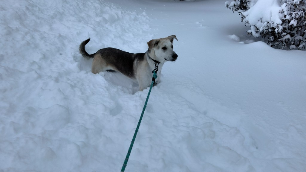 And Bella has been lovely too. She’s handled having a baby in the house so well and with grace. I’m so proud of that canine. Enjoy a moment with her in the snow.
