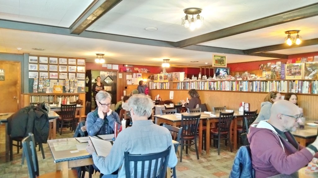 It’s a very Yankee New England place to eat. It’s warm and cozy inside as books and puzzles fill any and all open space. In fact, the first thing you see when you walk in is a set of six-foot-high bookshelves.