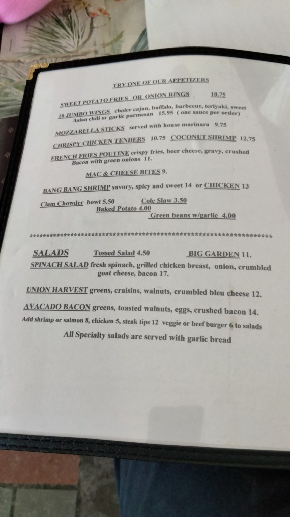 The menu also felt very New England. It played the hits with hearty homestyle meals that were meant to fill you up on a cold day, and today was a mighty cold one.