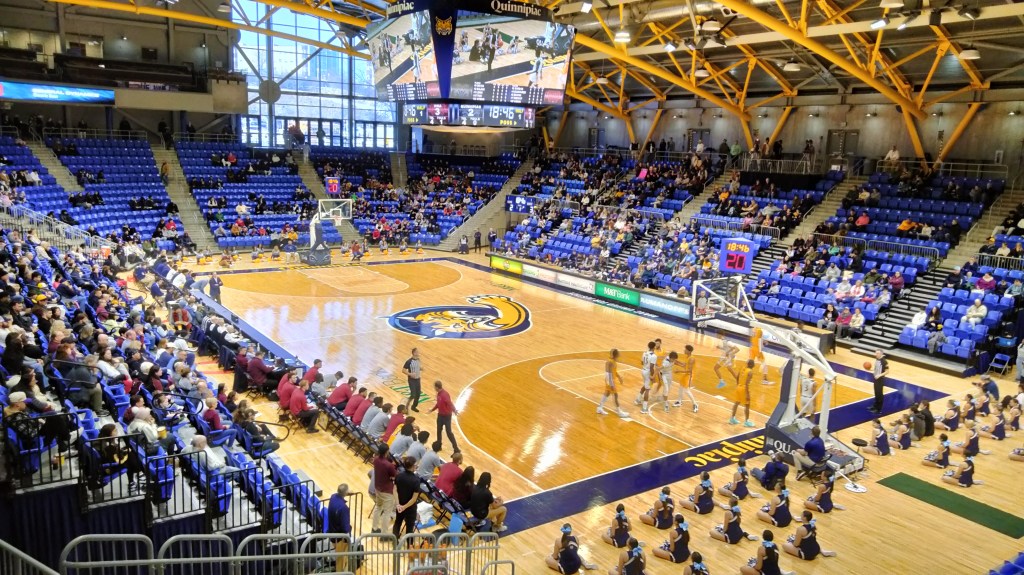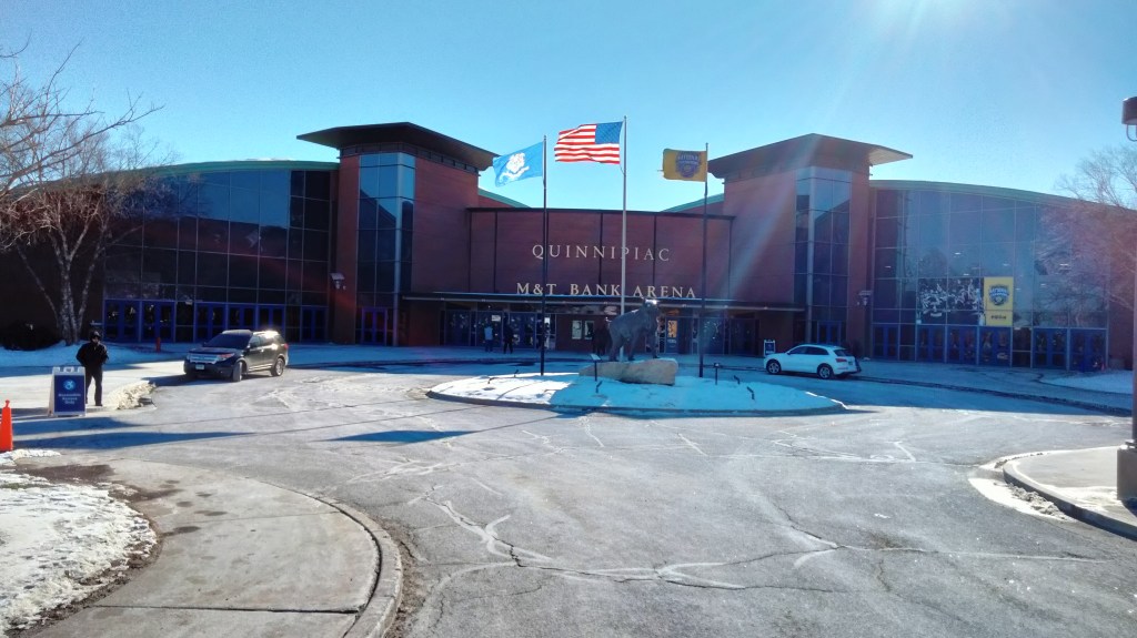 M&T Bank Arena sits on Quinnipiac’s York Hill Campus, a short drive from its main Mount Carmel campus in Hamden. And it’s one hell of a hill as it’s nearly a half mile drive up from the main road to get to the parking lot.