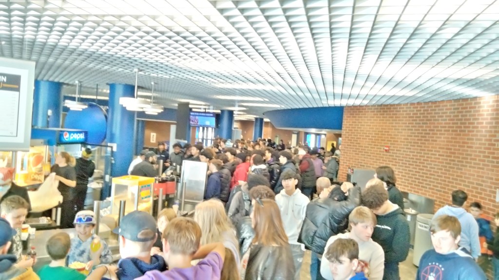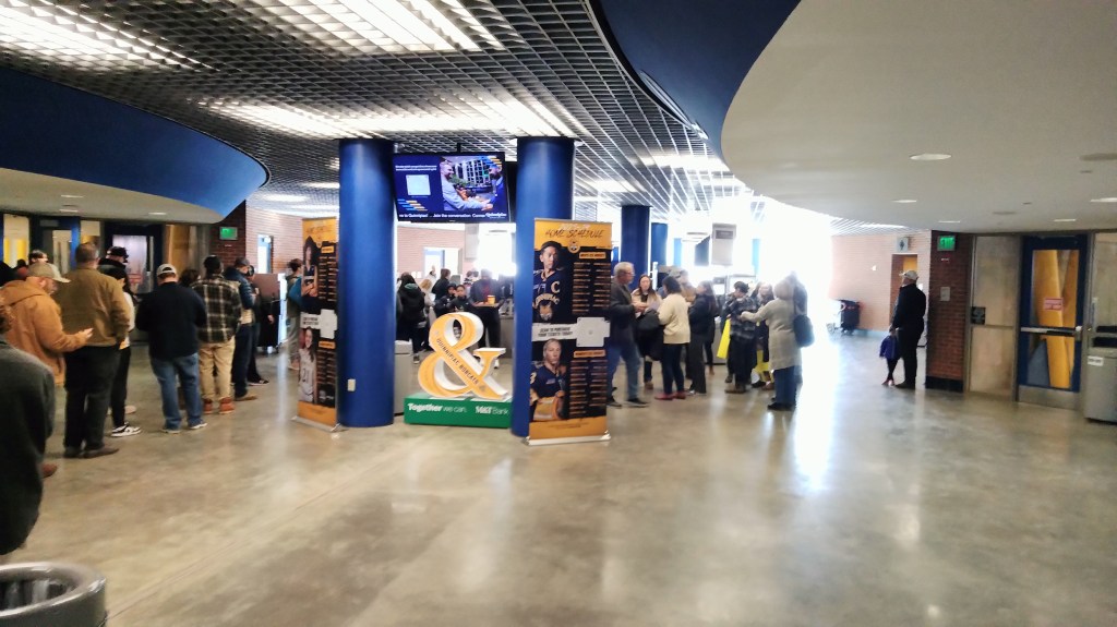 Now, this wasn’t a busy gameday. Yes, there was a small figure skating event in the rink, but the hoops game would only fill about half the building. And yet there were only two registers open at the food stand all game. A real flub in game management.