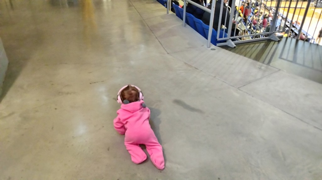But this one was for me and my daughter. We got to get some driving time together, and she got to make moves in a spacious arena. I wish I had a dollar for every time someone waved at her during halftime.