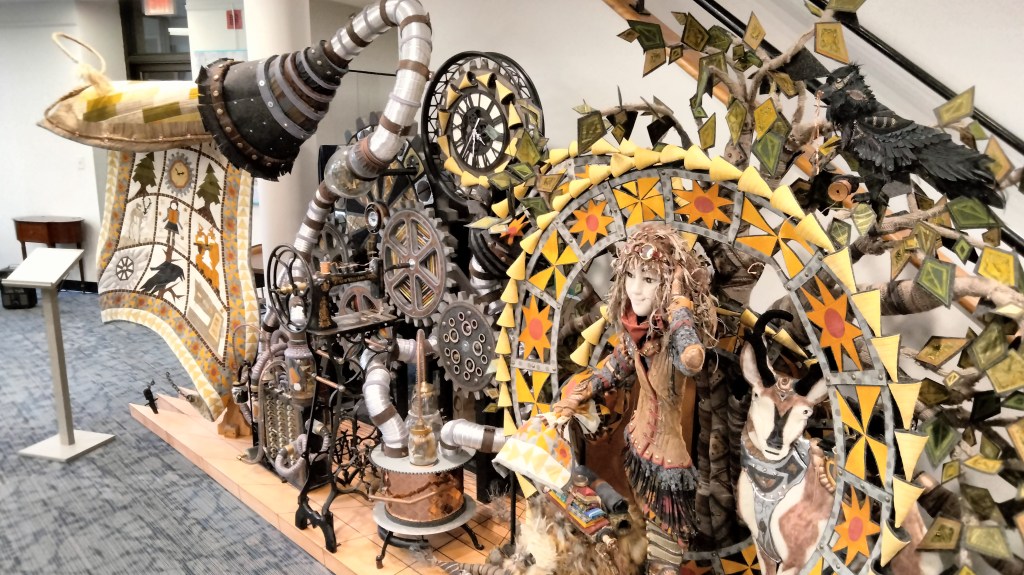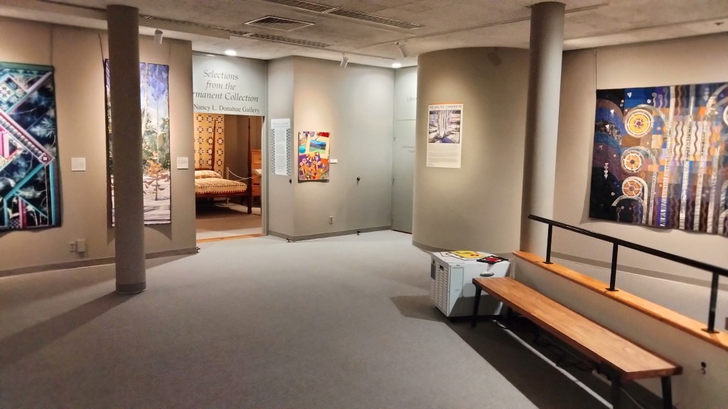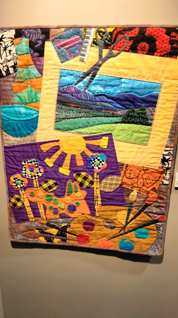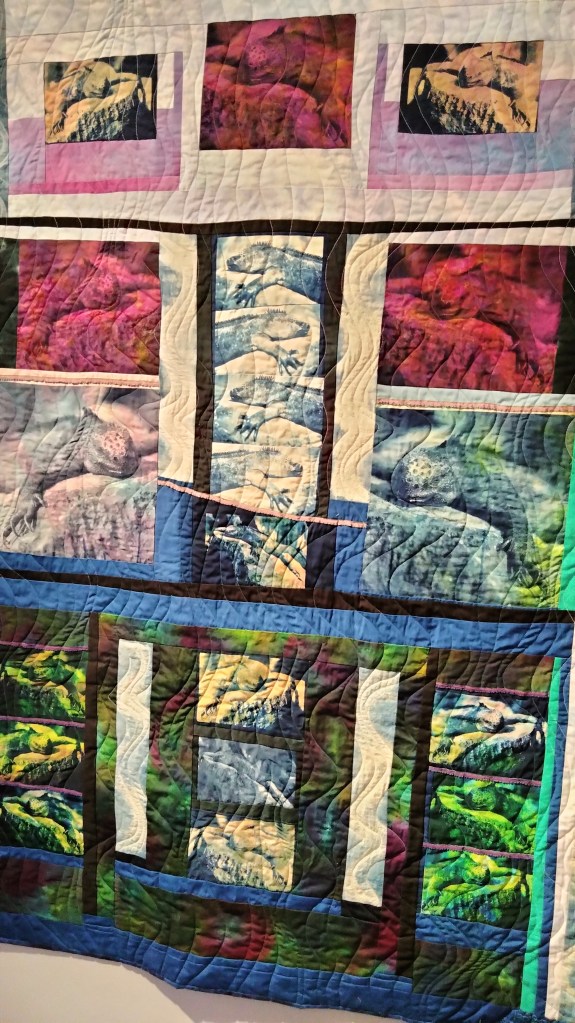 There were many old quilts on show made from multiple textiles. These were more just patterns, but some were absolutely huge. I love how people’s drive to create can take them in so many directions. For me, it’s writing blogs like this. For others, past and present, there is quilting. Or, as I read on the wall, the fiber arts.