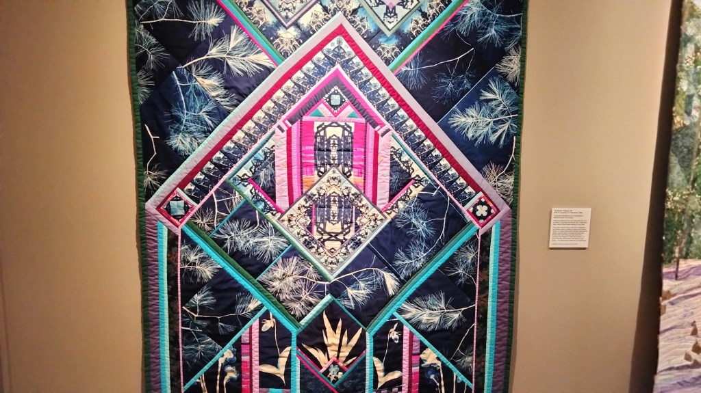 There was a special gallery dedicated to the work of Marge Tucker which was a great change of pace. Amid rooms of massive landscapes, big scenes, and Brown’s cyanotypes, Tucker cut against the grain. Her quilts went into the direction of modernism, bordering on abstraction. The colors were bright and bold which made the designs pop even more against the rest of the museum.