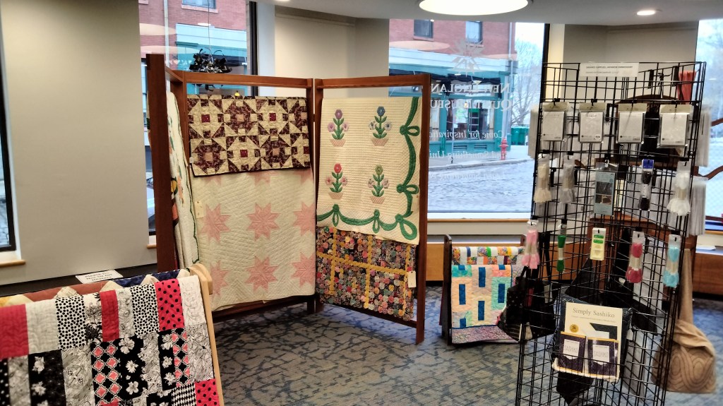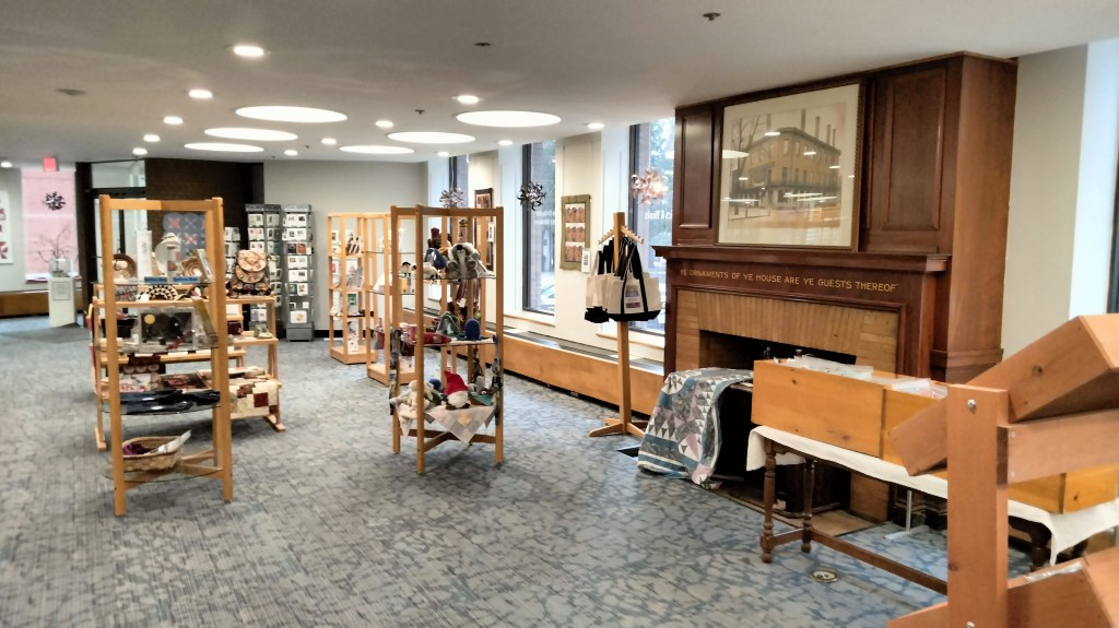 You start on the lower level in an expansive gift shop and check-in area. Wares of many types are sold as well as quilting materials and tools.