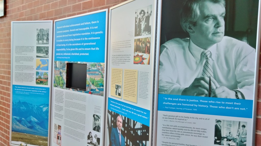 A statue and museum-like exhibit to Tsongas is on display in the arena’s lobby.