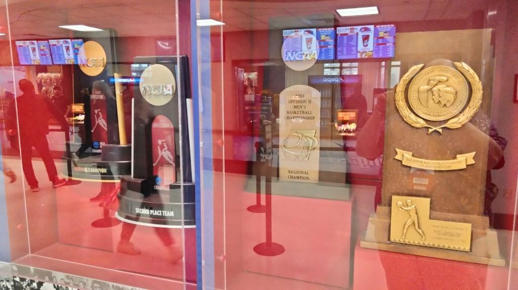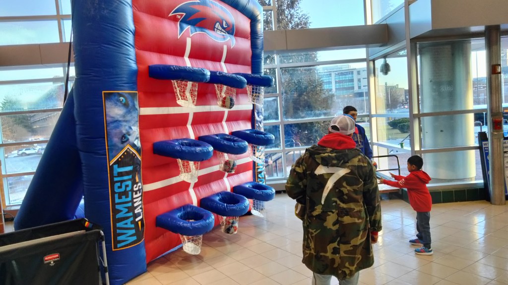 The arena is a midsize venue. When fully open, it sits around 6,500 people. However, for basketball, a curtain is put up at one end which lowers capacity to around 4,500 or so. A crowd of 3,583 would pile in for this one.