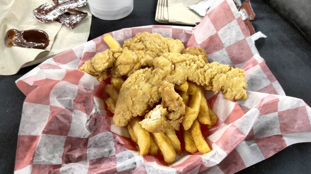 There were no media/staff meals, so I had to buy dinner on this night. I went with the tender/fry combo and a souvenir cup. You can never have too many souvenir cups.