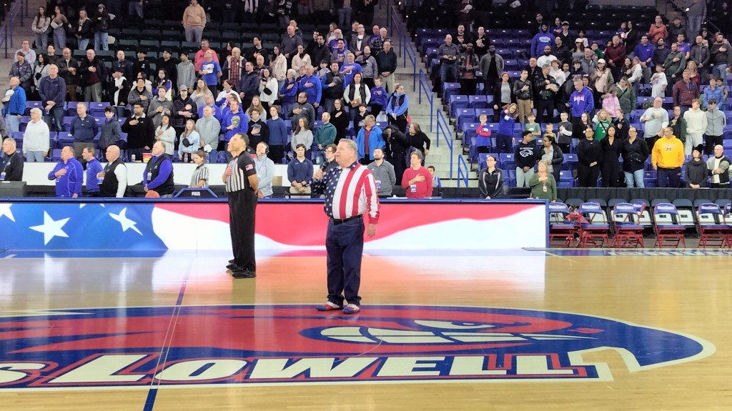 Aside from his on-brand outfit, which he has worn for every anthem I’ve seen him sing, he’s the world record holder for most national anthems sung. On this night it was #5,312. He holds the record for most in a year with 500. Being from Southern New Hampshire he’s all over the region from college and high school games to veterans events and parades.