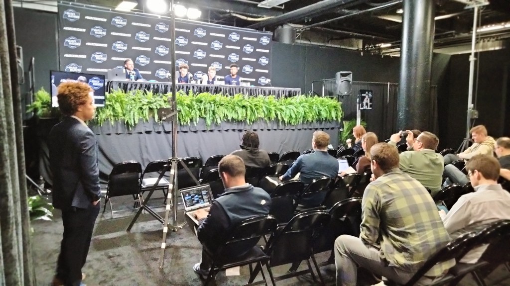 The nets were cut and done by 8:45. The second game of the night, Clemson-Alabama was just about to start in Los Angeles. Now it was all about wrapping things up. UConn had their final press conference. I had a story to write for the paper and try to put a bow on this blog.