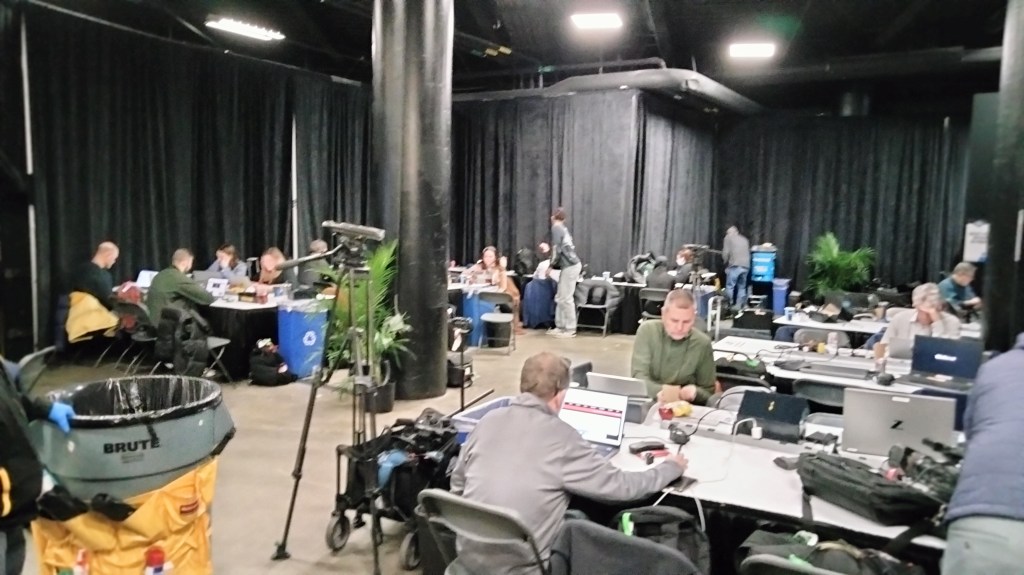 The local TV folks from near and far were spreading out, trying to find places to do their standups. Some were taped, some were live. Everyone just wanted to go home.